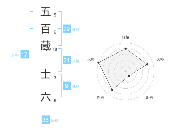 五百蔵 士六さんの総格は38画の4点!