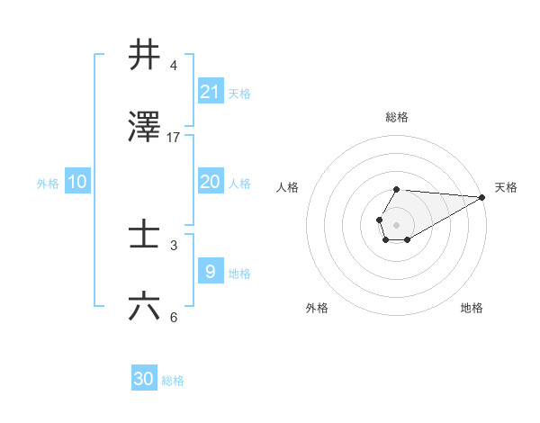 井澤 士六さんの天格は21画の5点!