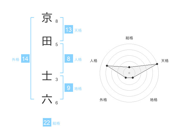 京田 士六さんの天格は13画の5点!