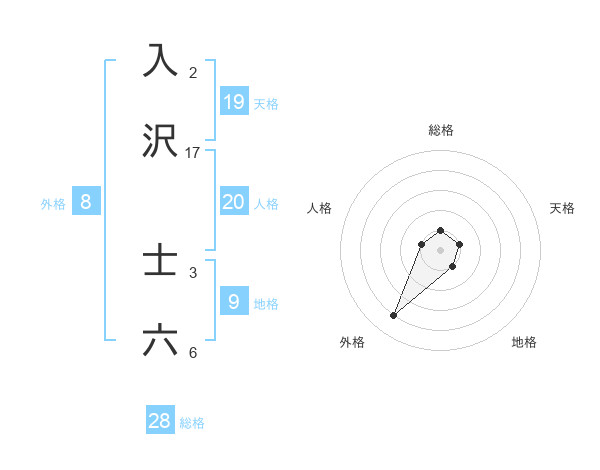 入沢 士六さんの外格は8画の4点!