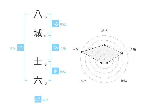 八城 士六さんの総格は27画の3点!