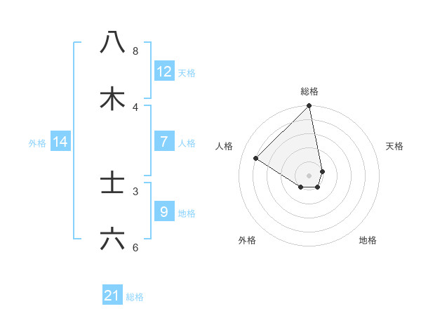 八木 士六さんの総格は21画の5点!