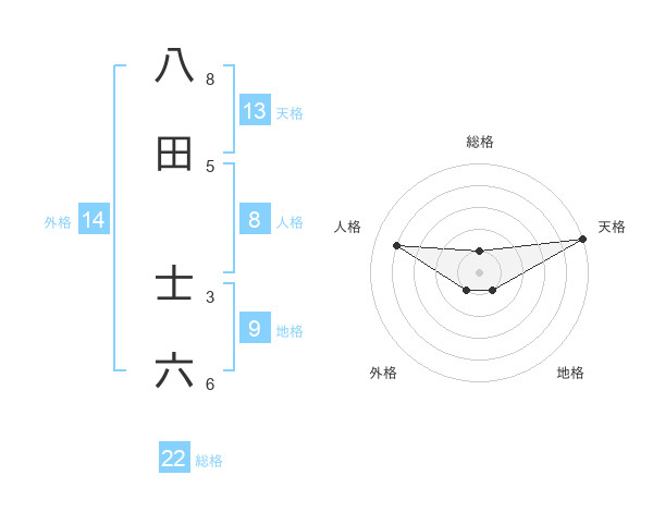 八田 士六さんの天格は13画の5点!