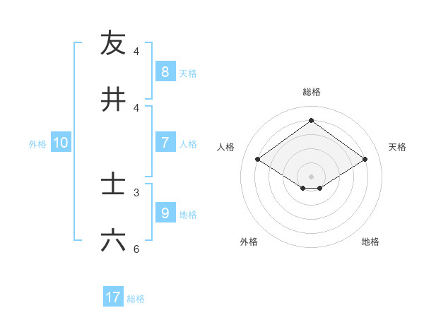 友井 士六さんの天格は8画の4点!