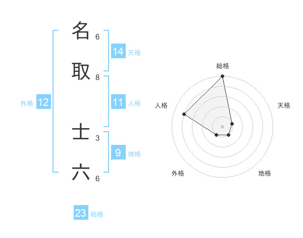 名取 士六さんの総格は23画の5点!