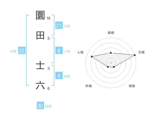 圜田 士六さんの総格は30画の2点!