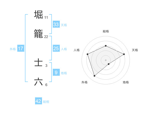 堀籠 士六さんを姓名の画数から五運を鑑定