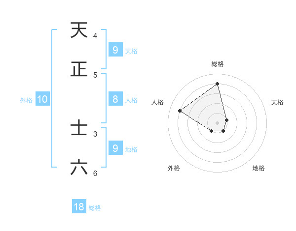 天正 士六さんの総格は18画の4点!