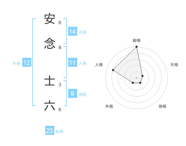 安念 士六さんの総格は23画の5点!