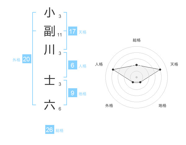 小副川 士六さんの総格は26画の2点!