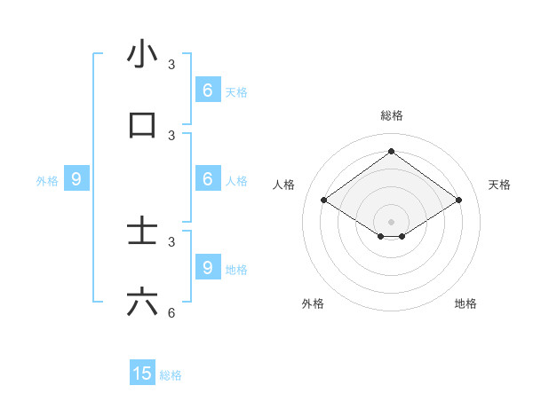 小口 士六さんの総格は15画の4点!