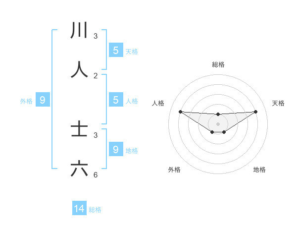 川人 士六さんの天格は5画の4点!