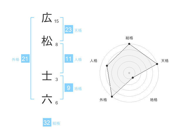 広松 士六さんの天格は23画の5点!