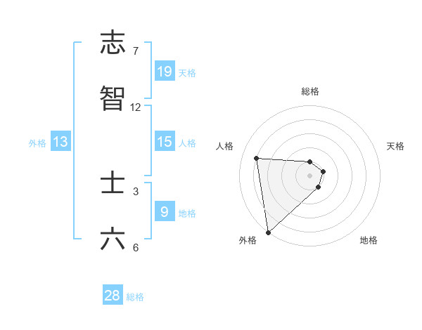 志智 士六さんの外格は13画の5点!