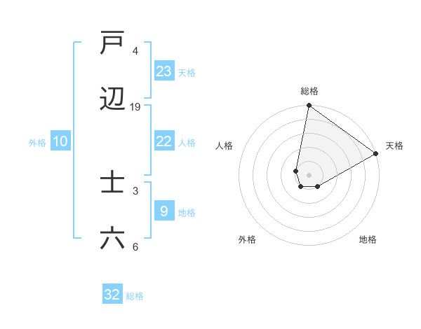 戸辺 士六さんの総格は32画の5点!