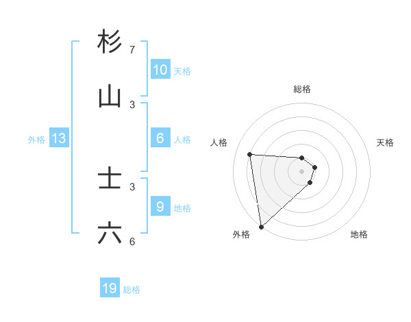 杉山 士六さんの外格は13画の5点!