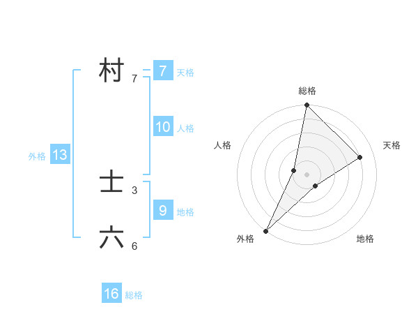 村 士六さんの外格は13画の5点!