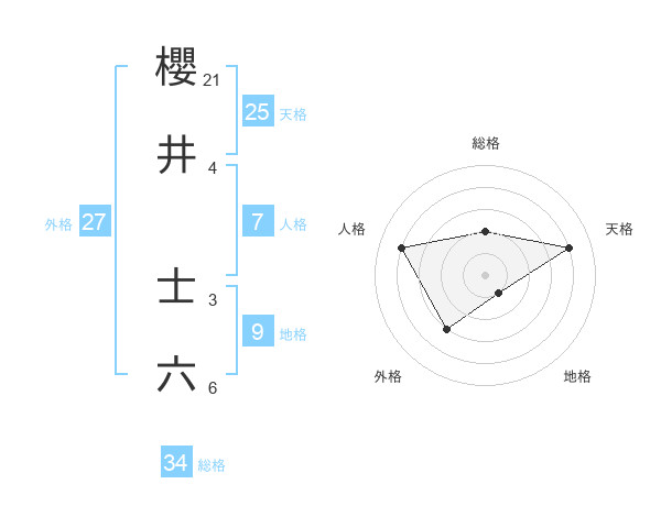 櫻井 士六さんの総格は34画の2点!
