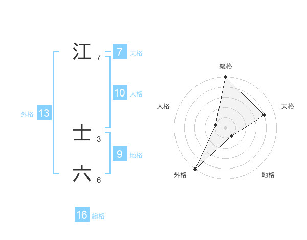 江 士六さんの外格は13画の5点!