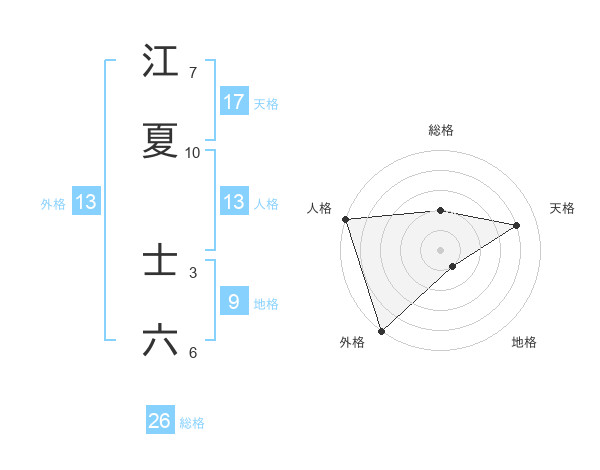 家系が持つ宿命的な運勢を表します。祖先から受け継いだ苗字ですので自分の力が及びません。家柄を象徴します。