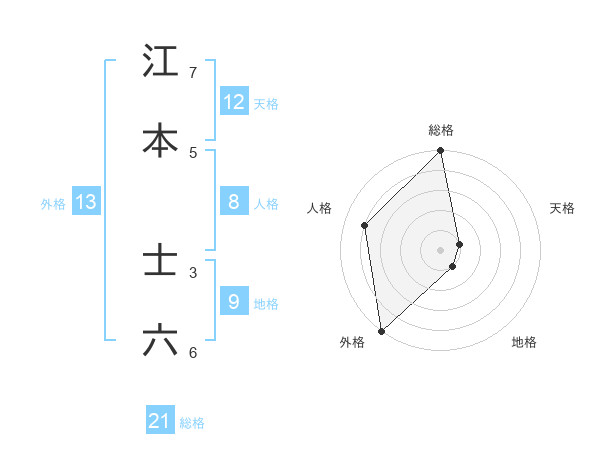 占い結果は姓名判断である以上、良い場合も悪い場合もありますが、決してお名前を誹謗中傷するものでなく、画数の自動計算によって得られたものです。また、本サイトの検索によって得られた鑑定結果で、第三者を誹謗中傷したり名誉を棄損するような行為を禁じます。