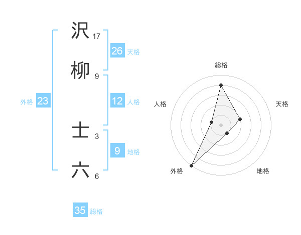 沢柳 士六さんの総格は35画の4点!