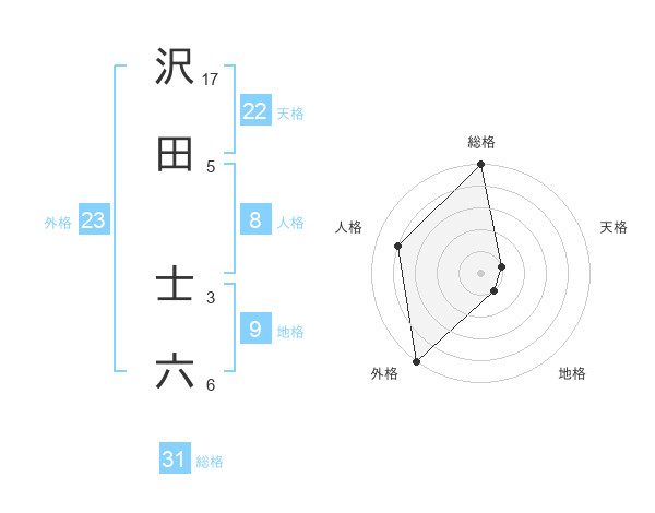 沢田 士六さんの総格は31画の5点!