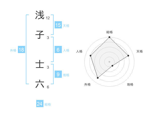 浅子 士六さんの総格は24画の5点!