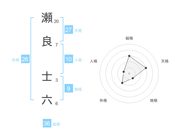 瀬良 士六さんの総格は36画の3点!