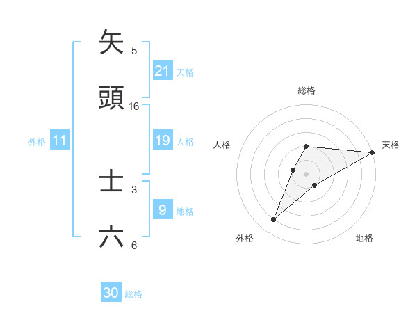 矢頭 士六さんを姓名の画数から五運を鑑定