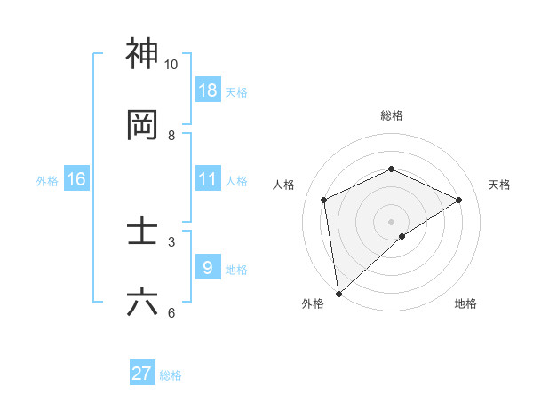 神岡 士六さんを姓名の画数から五運を鑑定
