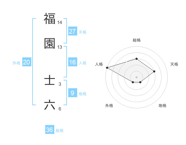 福園 士六さんを姓名の画数から五運を鑑定