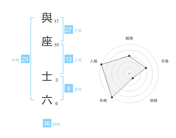 與座 士六さんの総格は36画の3点!