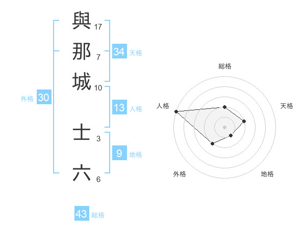 與那城 士六さんの総格は43画の2点!