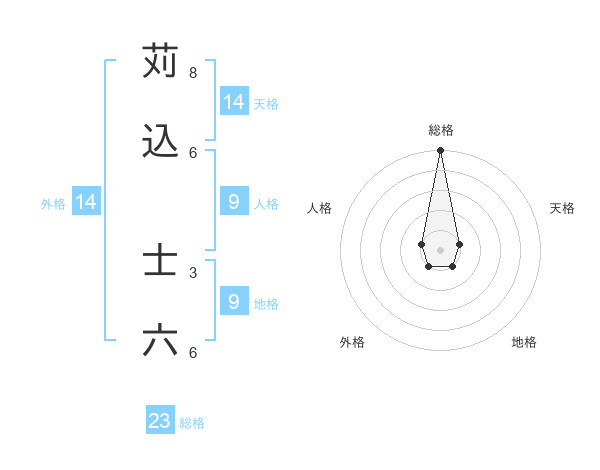 苅込 士六さんの総格は23画の5点!