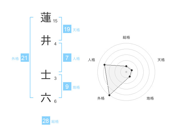 蓮井 士六さんの外格は21画の5点!