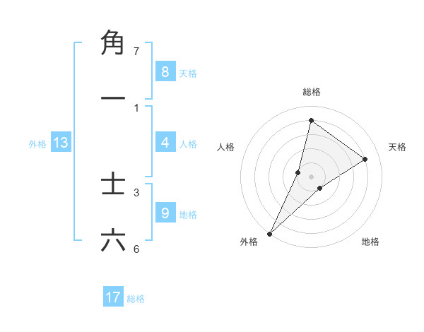 角一 士六さんの総格は17画の4点!