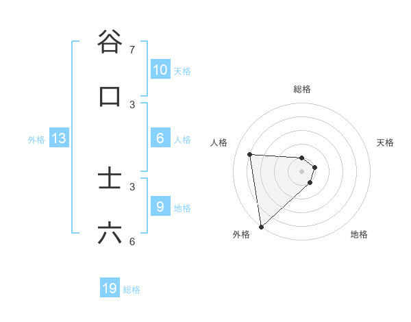 谷口 士六さんの外格は13画の5点!
