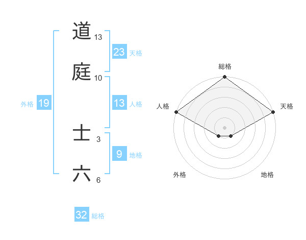 道庭 士六さんの総格は32画の5点!