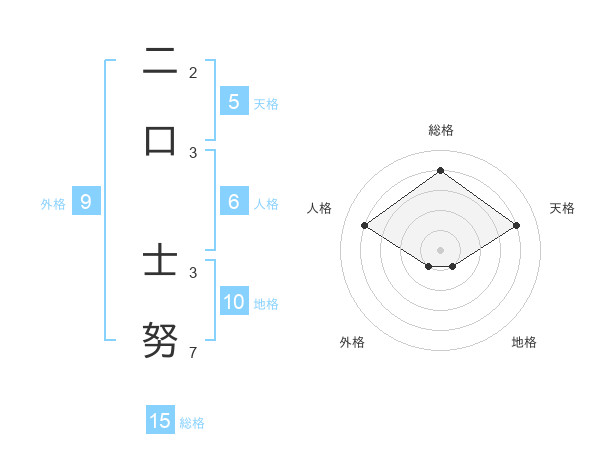二口 士努さんの総格は15画の4点!