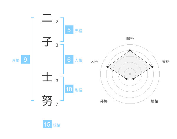 二子 士努さんの総格は15画の4点!