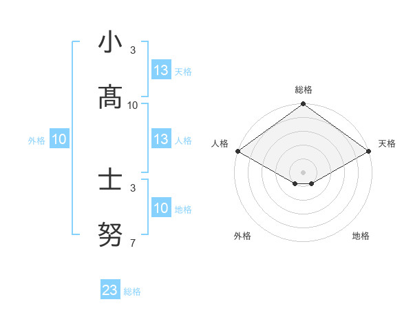 小髙 士努さんの天格は13画の5点!