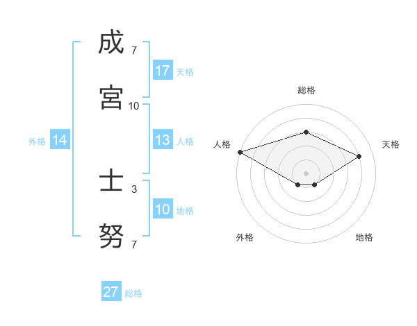 成宮 士努さんの天格は17画の4点!