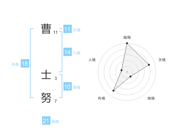 曹 士努さんの総格は21画の5点!