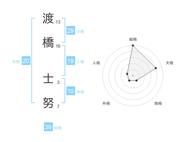 渡橋 士努さんを姓名の画数から五運を鑑定