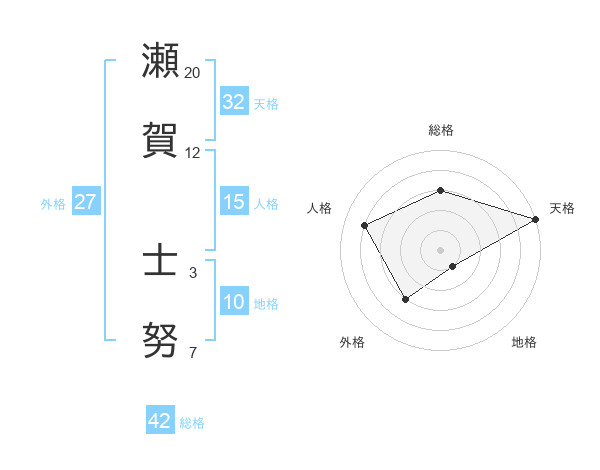 瀬賀 士努さんを姓名の画数から五運を鑑定