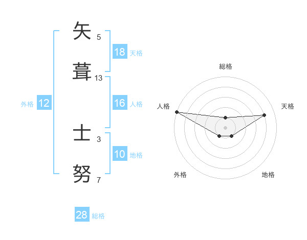 矢葺 士努さんを姓名の画数から五運を鑑定