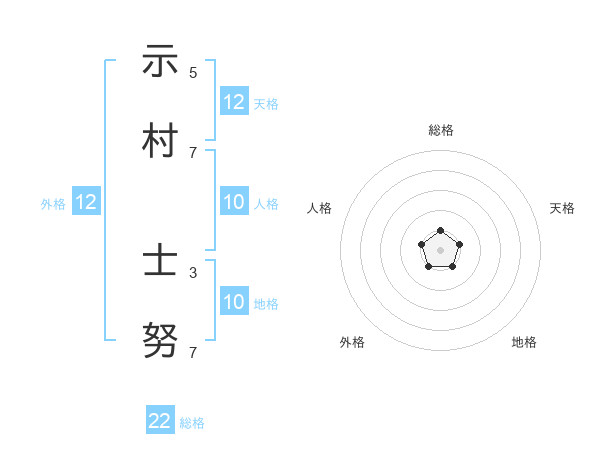 示村 士努さんの総格は22画の1点!