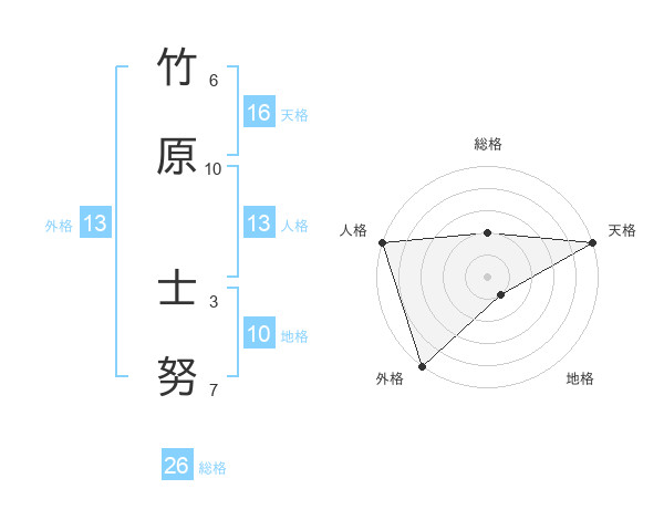竹原 士努さんの総格は26画の2点!