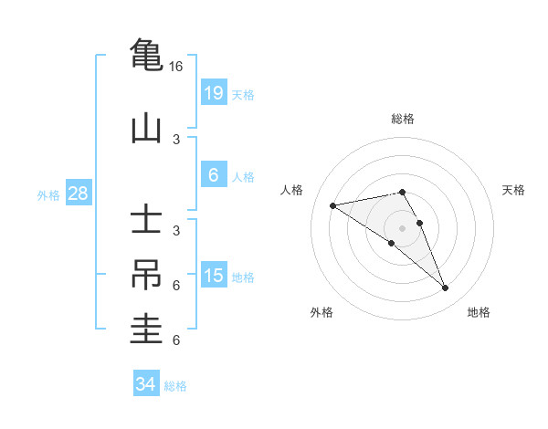 亀山 士吊圭さんを姓名の画数から五運を鑑定